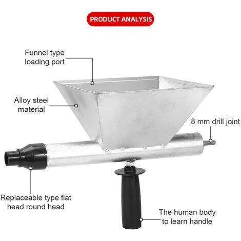 Utilisez-vous toujours la méthode traditionnelle de remplissage manuel du ciment ? Il y a beaucoup de problèmes avec cette méthode, comme l’inefficacité, le fait de vous faire travailler dur, etc. Venez essayer notre machine de remplissage de ciment électrique, connectez-vous simplement à votre perceuse électrique (NON INCLUS), vous pouvez obtenir un Grouter électrique, cela améliorera considérablement l’efficacité de votre travail.
